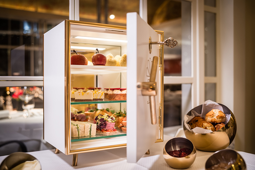 Enjoy an afternoon tea that is full of surprises. We will not only serve you a choice of selected tea varieties as you listen to the sounds of ambient live music – you'll also receive a golden key to the exclusive safe that contains a range of gourmet cakes and pastries made by our in-house patisserie. From 1 December onwards, Thursdays to Sundays 3.30 p.m. to 5.30 p.m., €79 per person.