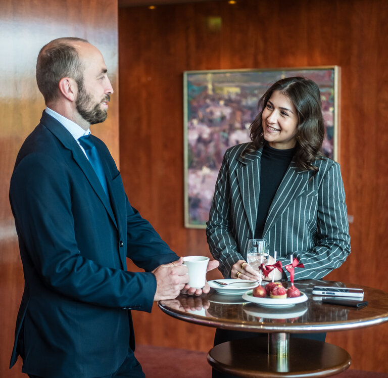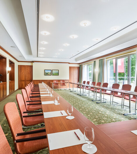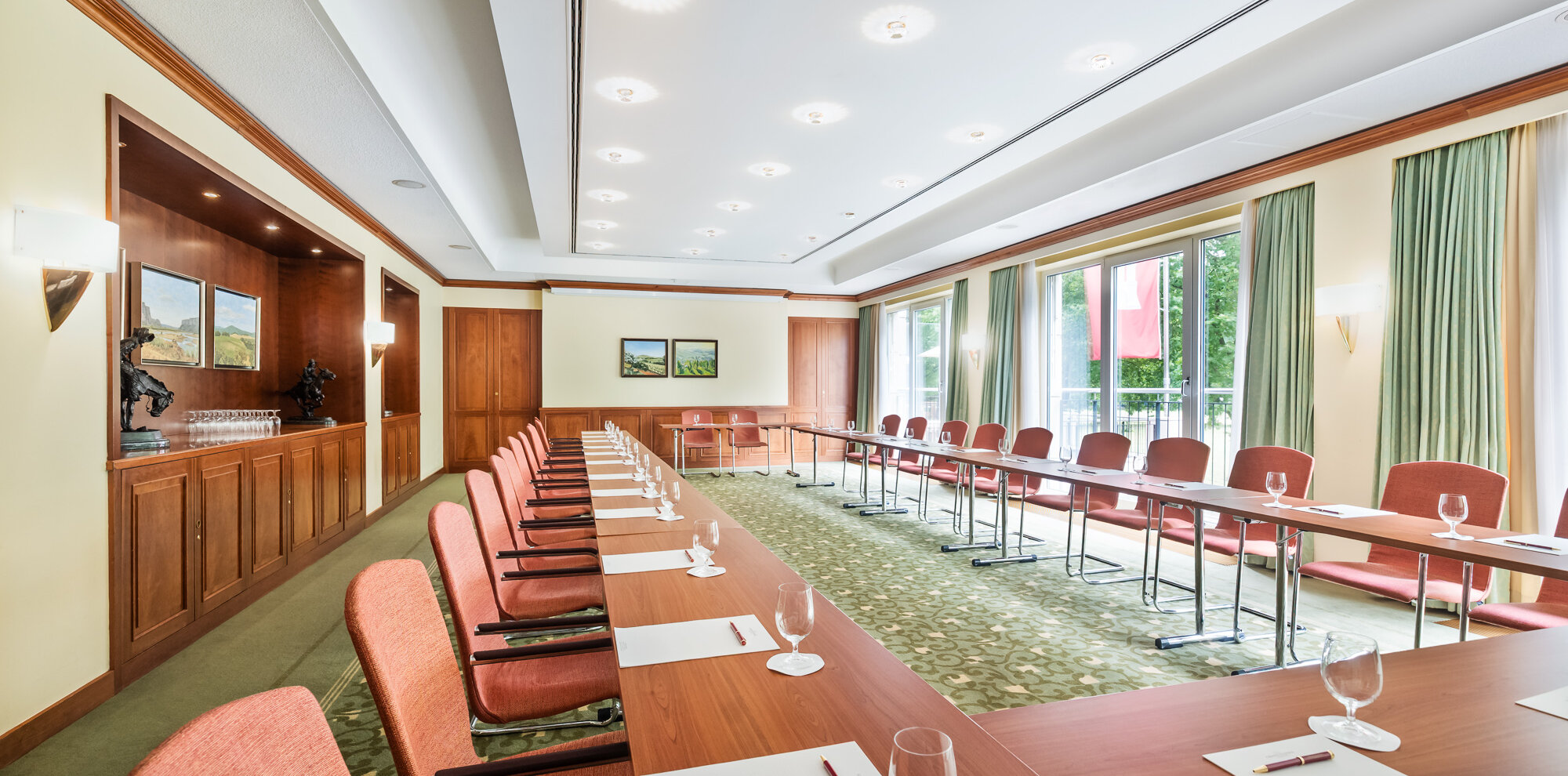 Floor to ceiling windows, a balcony and views of Moorweidenpark; suitable for functions attended by up to 50 people