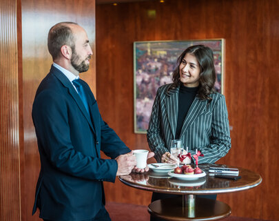 New England meets Hamburg in our Amerikahaus room: floor to ceiling windows and a balcony that overlooks Moorweidenpark give this event venue an airy, open atmosphere. Its eighty square metres are suitable for workshops, meetings or receptions where light and expansiveness play a particularly important role.