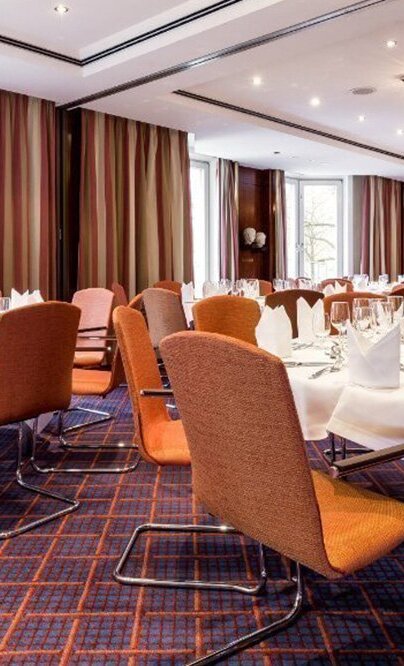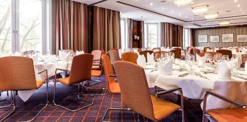 Our function room Europa is located on the first floor of the Grand Elysée Hamburg and measures one hundred square metres – plenty of room for workshops, meetings or receptions. The expansive windows ensure a comfortable level of daylight, whilst the two room sections unlock flexible options for its use.