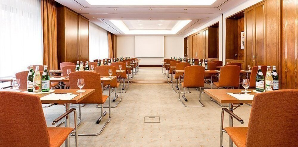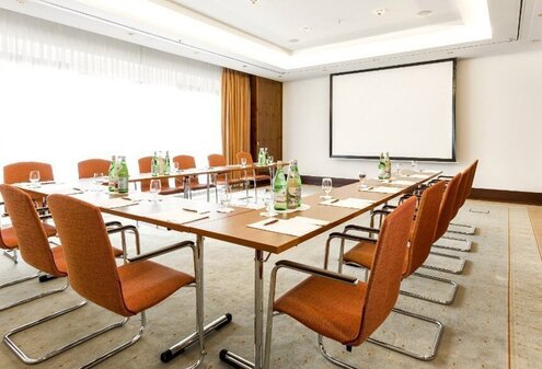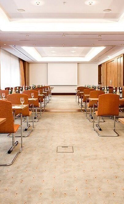 Our Oak Room is a versatile function room that is located on the first floor of the Grand Elysée Hamburg. The oakwood panelling gives it a warm atmosphere, whilst the floor to ceiling windows with views across Moorweidenpark let in plenty of daylight. This room measures one hundred and five square metres and consists of two sections, which makes it ideal for workshops, meetings or receptions attended by up to 80 people.
