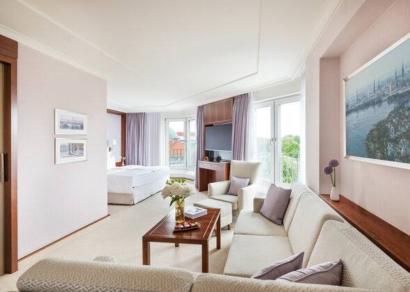 Our Pöseldorf function room is located on the first floor of the Grand Elysée Hamburg's Art Nouveau villa and provides a quiet setting for confidential meetings. It is lit by daylight, and the access to the balcony creates a comfortable atmosphere for small group meetings or confidential conversations.