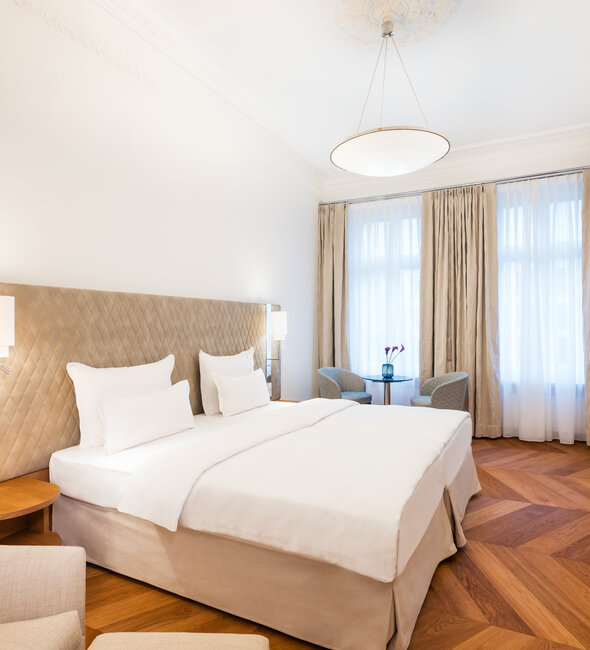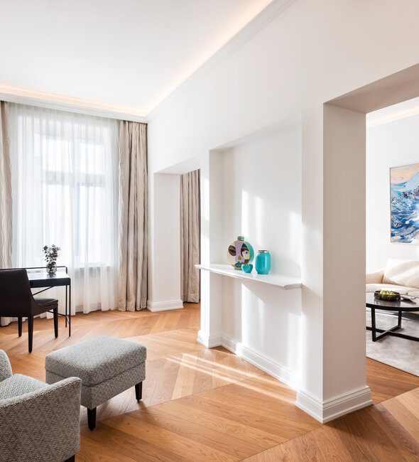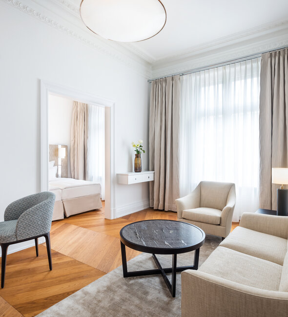 Our rooms and suites couple comfort with the relaxedness that is typical for Hamburg. Their comfortable brightness, elegant design and spaciousness make them feel calm and cosy. We offer a choice of various types of rooms and suites: generously proportioned and with everything that you would expect from five-star accommodation.