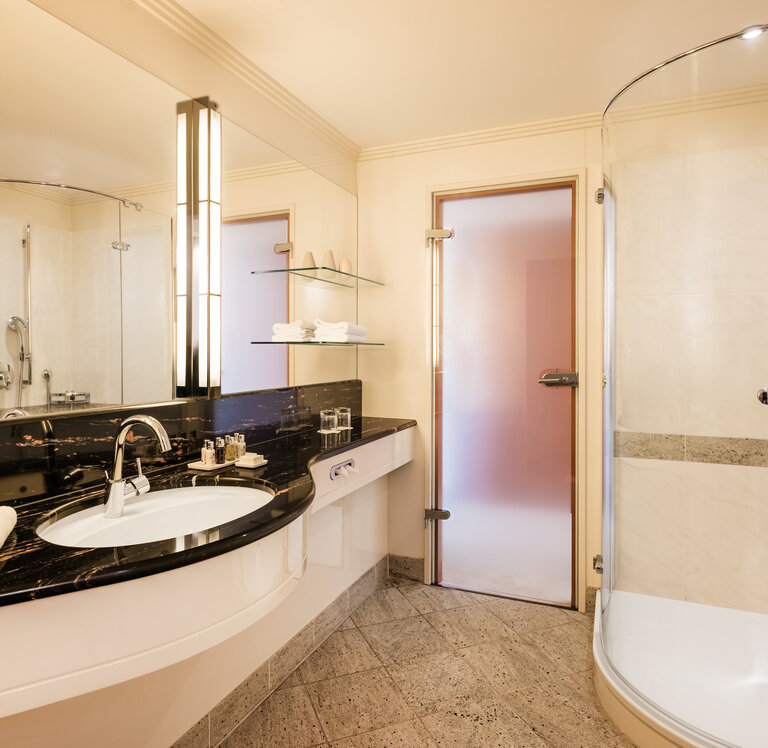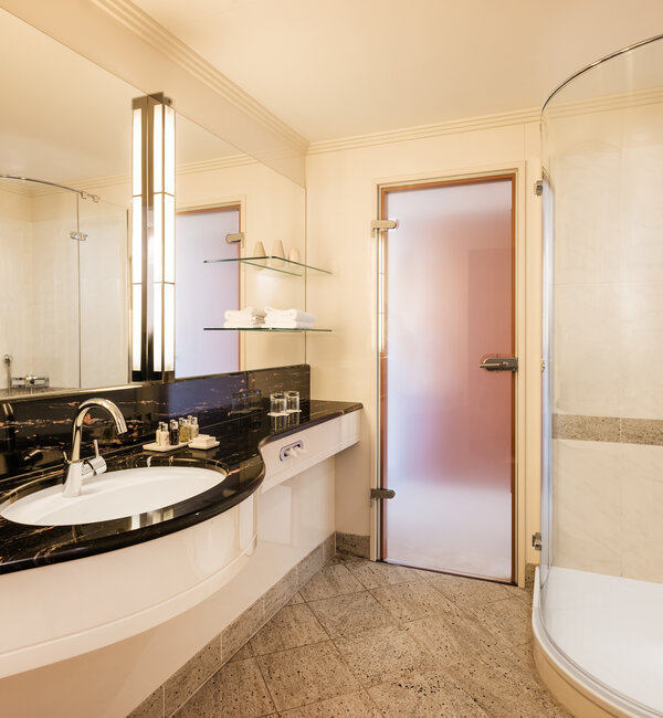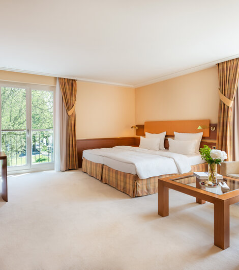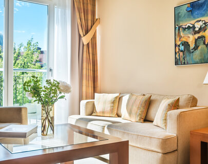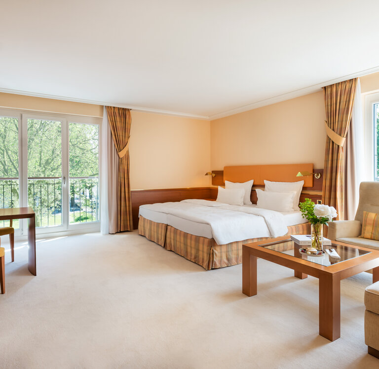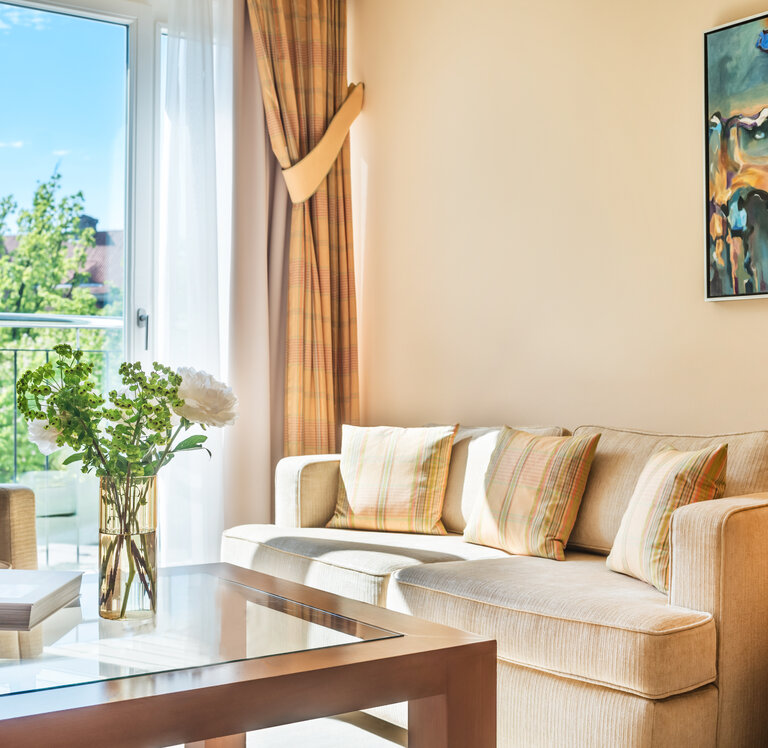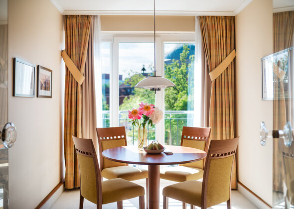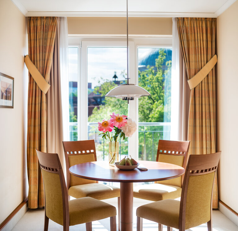 Our Corner Suite offers fifty-seven square metres of right-angled elegance. A bedroom with a couch and an armchair for long conversations. A hospitable dining area, and a bathroom that spoils you with a shower and a bathtub that completely round off our Corner Suite.