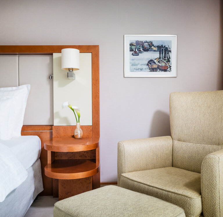 Green views right in the middle of Hamburg? Our Courtyard Garden Room couples quiet with comfort. An extra wide double bed, lounge chairs and a desk invite you to stay. Selected rooms also come with a bathtub for even more relaxation.